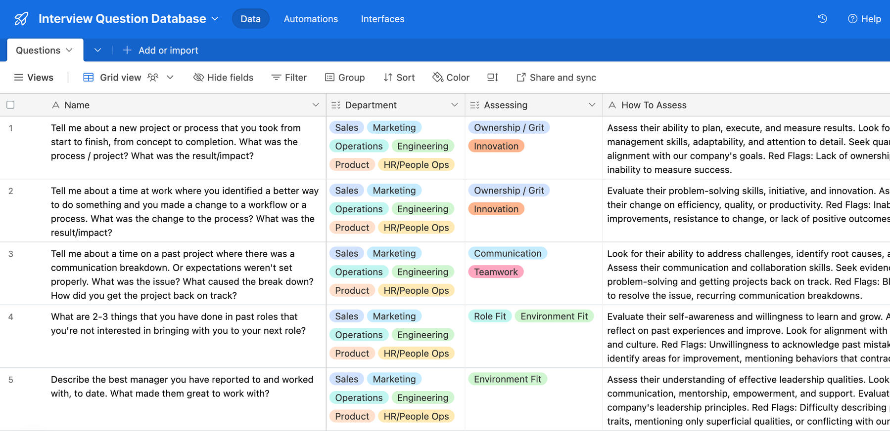 You'll receive my interview question database for early stage startups with over 100 questions for common startup roles, including sales, marketing, product, and more (including questions used by companies like Uber, Google, Veho, etc.)